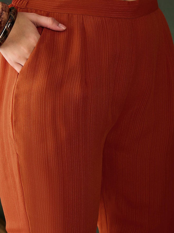 Rust Milky Georgette Zari Sequence Embroidery Kurta with Pant and Dupatta (Set of 3)