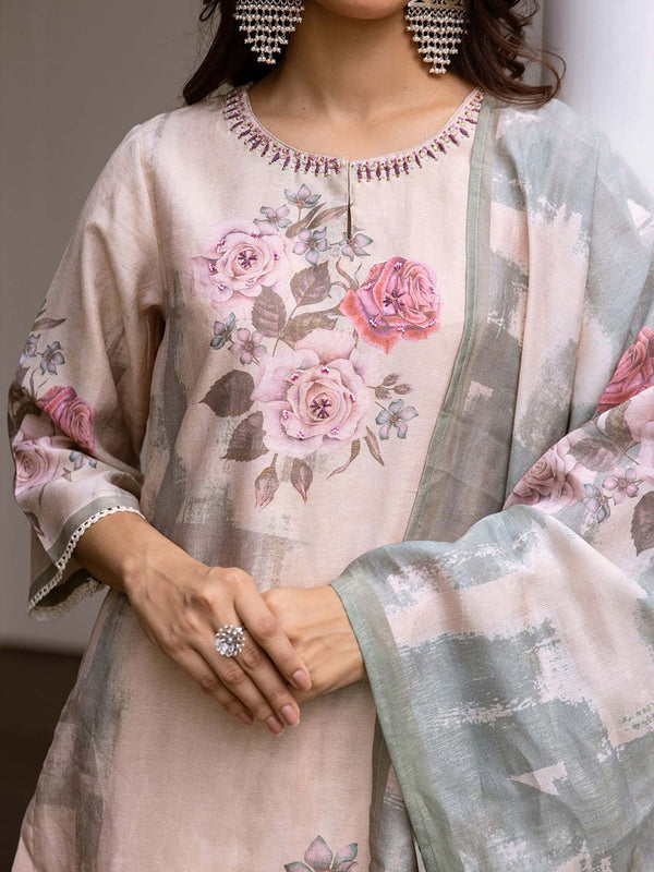 Women Cream Modal Shimmer Kurta with Pant & Dupatta (Set of 3)