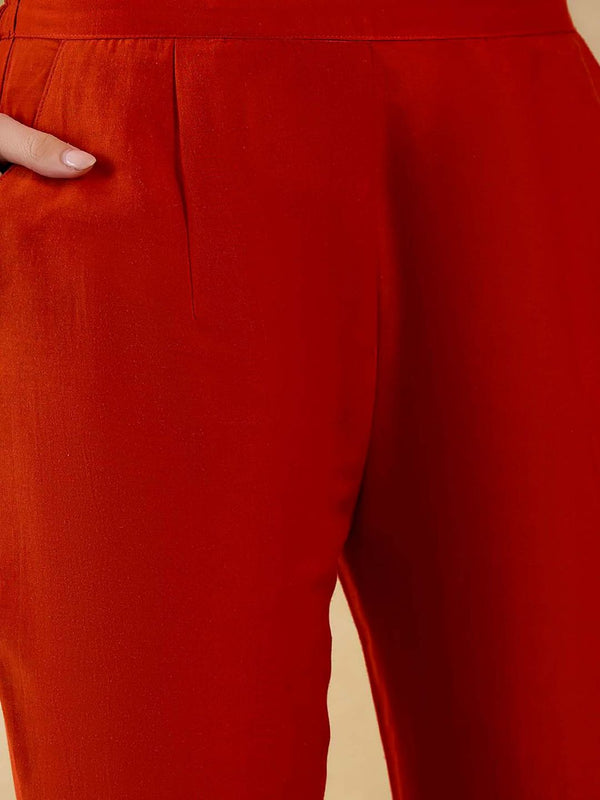 Women Orange Silk Blend Embroidered Kurta with Pant and Dupatta (Set of 3)
